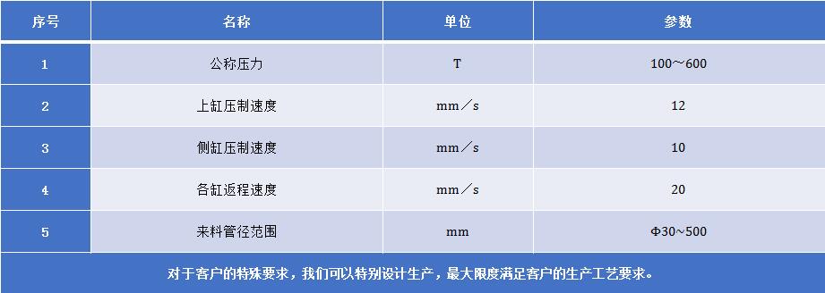 高效壓制大規(guī)格的管材,有效節(jié)省制頭廢料,制頭效果好,易于拉拔機(jī)穿模,制頭端部不易拉斷。